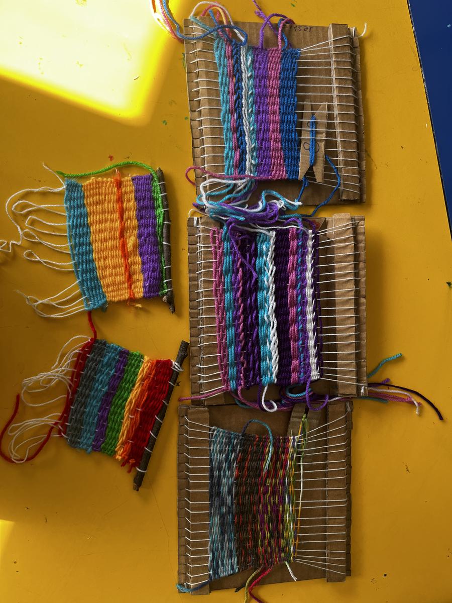 Grade 5/6 students are currently completing their weaving projects. After mastering basic weaving techniques, they are now carefully removing their creations from the looms and adding final embellishments. In an exciting twist, students are able to take their looms home to continue weaving independently, extending their learning beyond the classroom.