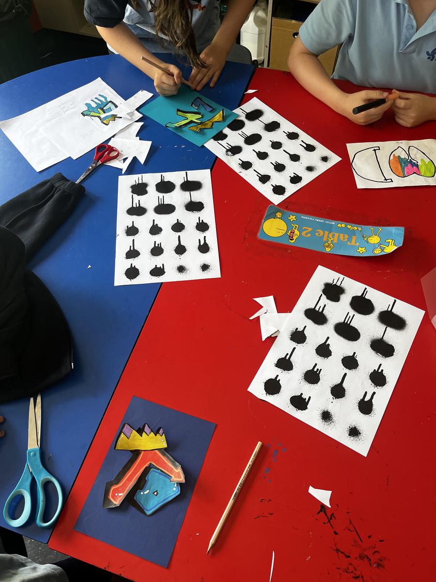 Grades 3/4 have been exploring the world of graffiti and street art. Through discussion and debate, they questioned the differences and similarities between these forms and considered whether both can be recognised as ‘art.’ Using paint pens and mixed media instead of spray cans, they created vibrant works that celebrate creativity in public spaces. They also recently completed Gelli prints, experimenting with layering colours and textures to produce stunning botanical-inspired pieces.